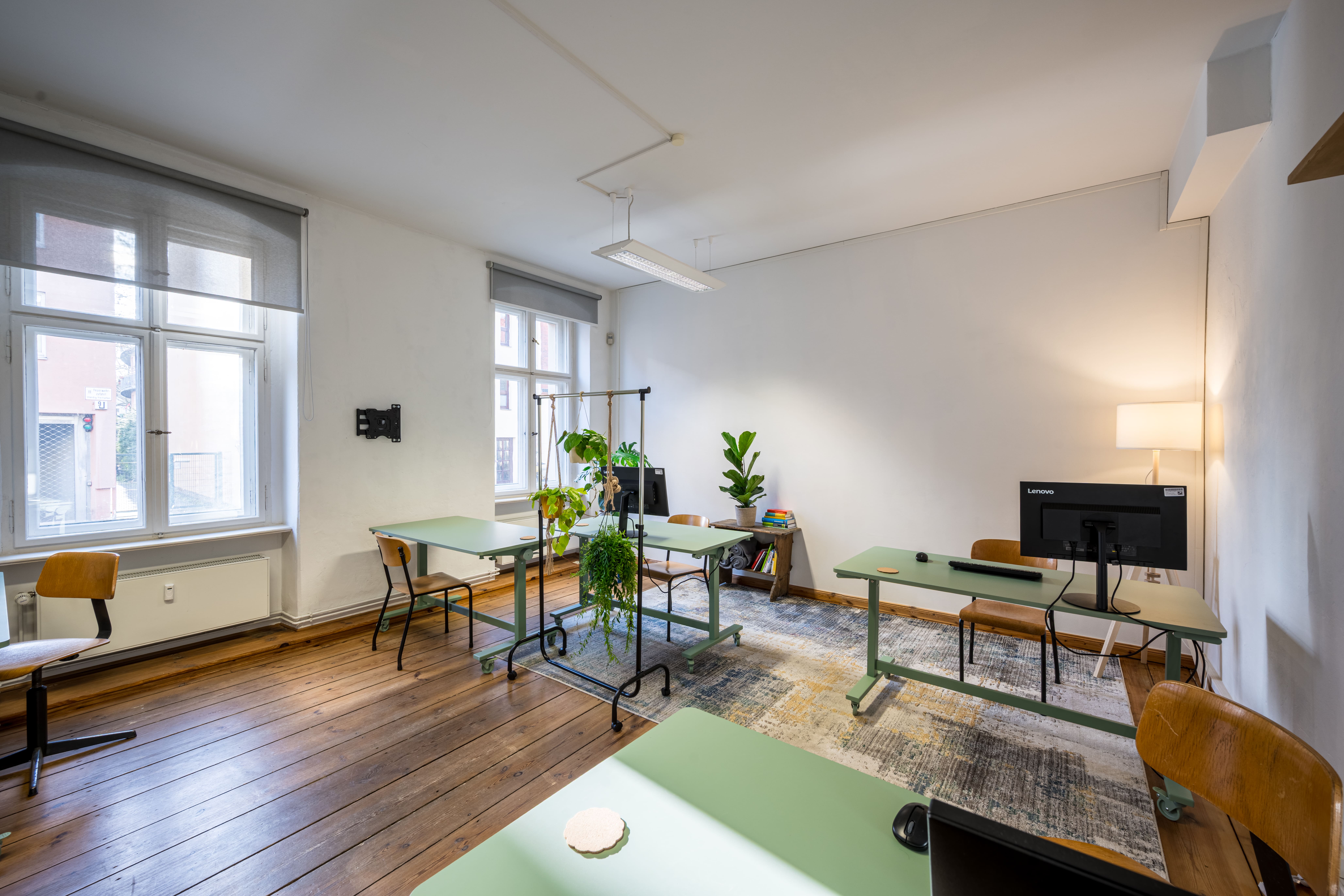 In wunderschön zentraler Lage Köpenicks bieten wir dir einen Ort für gute Arbeit und Engagement. Du bekommt einen eigenen Tisch - inkl. Bildschirm, Maus und Tastatur, wenn du das wünscht. Brauchst du für ein Meeting oder Telefonat Privatsphäre, kannst du dir einen separaten Raum buchen, je nach Verfügbarkeit.